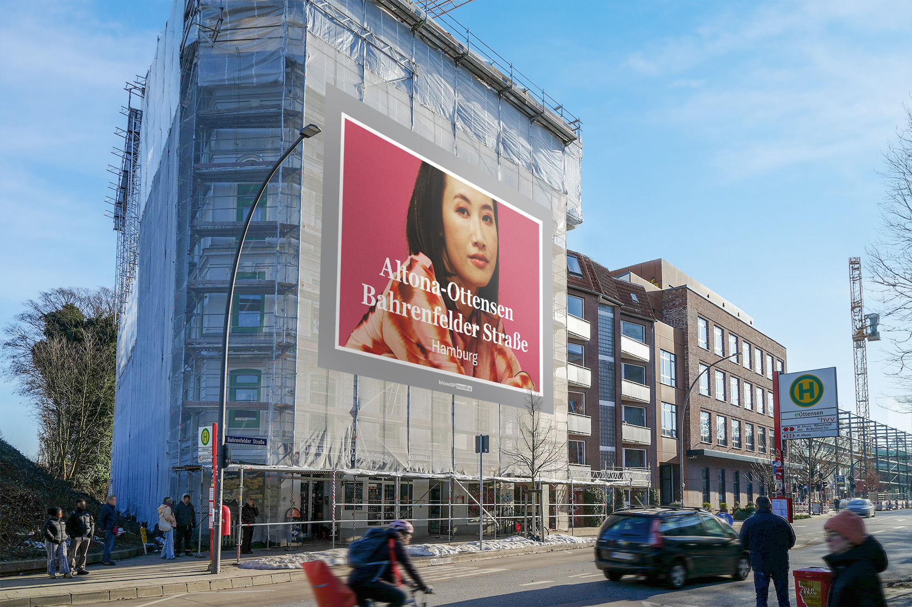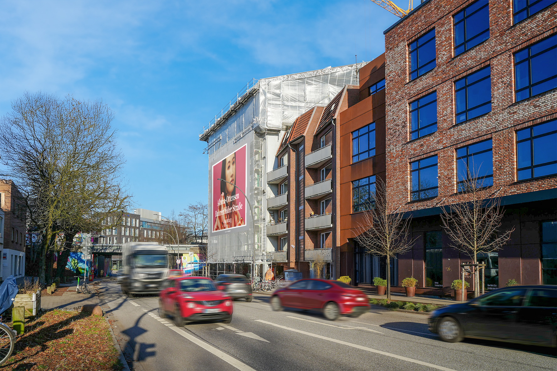 Colorful, urban, and full of energy - located in the heart of Ottensen and surrounded by charming cafés, creative shops, and small bars, the Giant Poster sits right where young locals and trendsetters converge. The vibrant streetscape and diverse boutiques define the neighborhood's unique character and attract a modern crowd. Thanks to its easy pedestrian connection to the center of Ottensen, countless passersby stroll through the area daily, exploring the diverse neighborhood, from everyday life and trendy spots to nightlife.