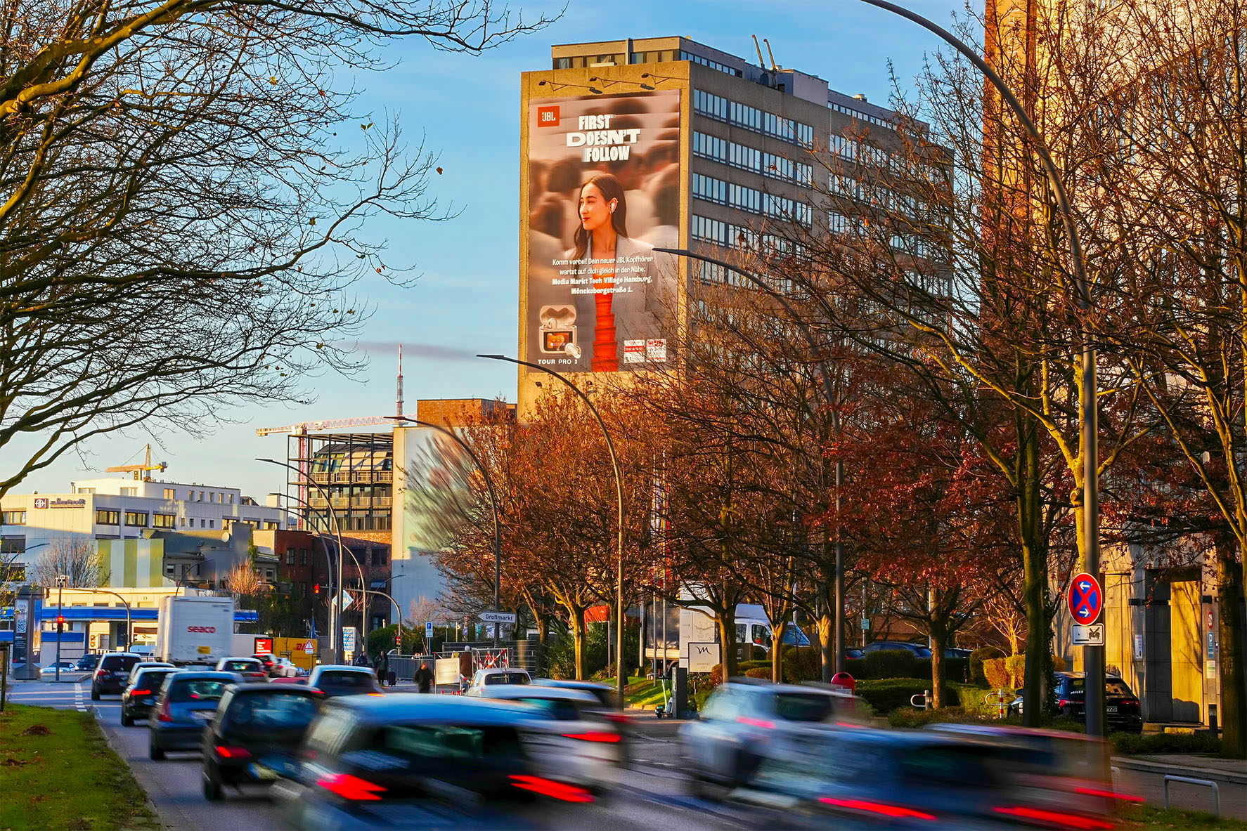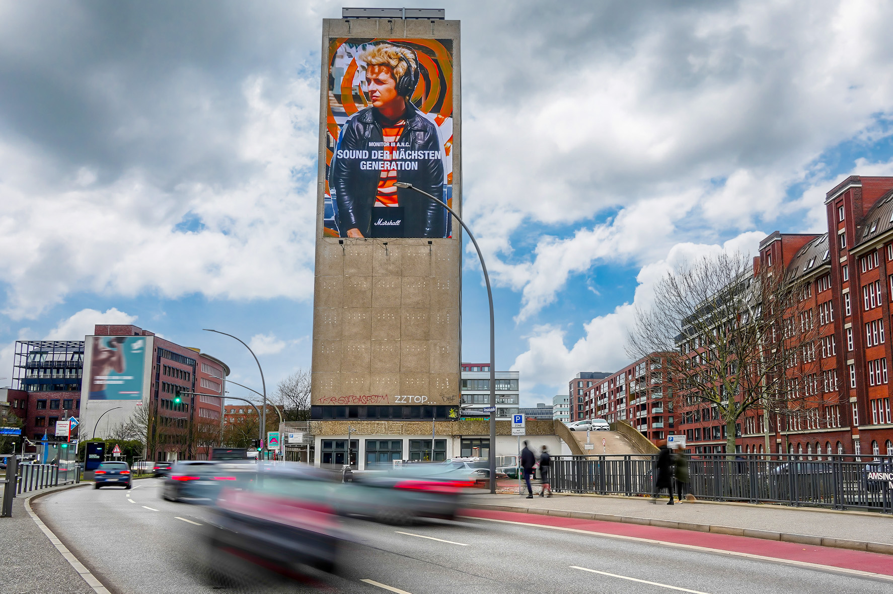 Huge eye-catcher in Hamburg's second largest business district: Hammerbrook! Large office complexes line the 3-lane, highly frequented Amsinckstraße and make it a meeting place for business professionals and young entrepreneurs. Around 800 companies have chosen Hammerbrook as their home. Trendsetters, shopping addicts and travellers frequent the main street daily in the direction of Hamburg's shopping mile, the main train station and the main traffic junction Deichtorplatz. Thanks to its elevated positioning, this Giant Poster provides brands with huge awareness and absolute unmissability.