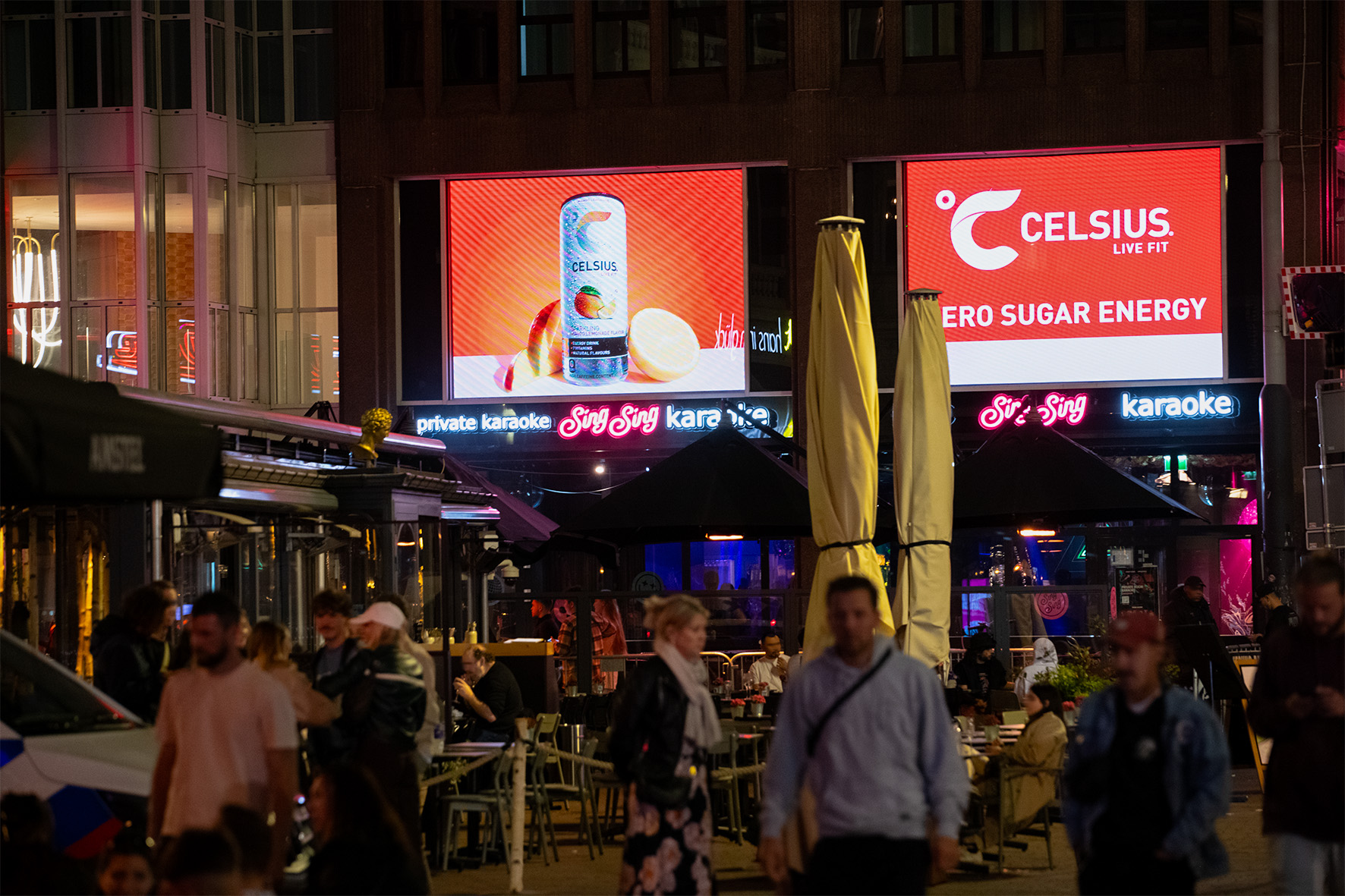 Double Digital® is the unique dual screen located in the heart of Amsterdam. Use the screens separately, run the same advert on both screens, or merge them and use them as one. This digital duo is situated on the busy Rembrandtplein, between the shopping streets Kalverstraat and Utrechtsestraat. Rembrandtplein is not only bustling during the day, but also has a vibrant nightlife and hosts various events throughout the year. Double Digital® combines a premium location, high visibility and state-of-the-art technologies, ensuring your message makes maximum impact.