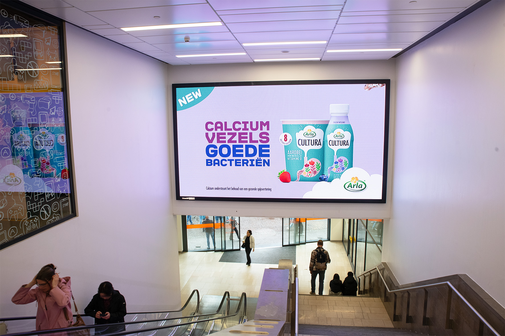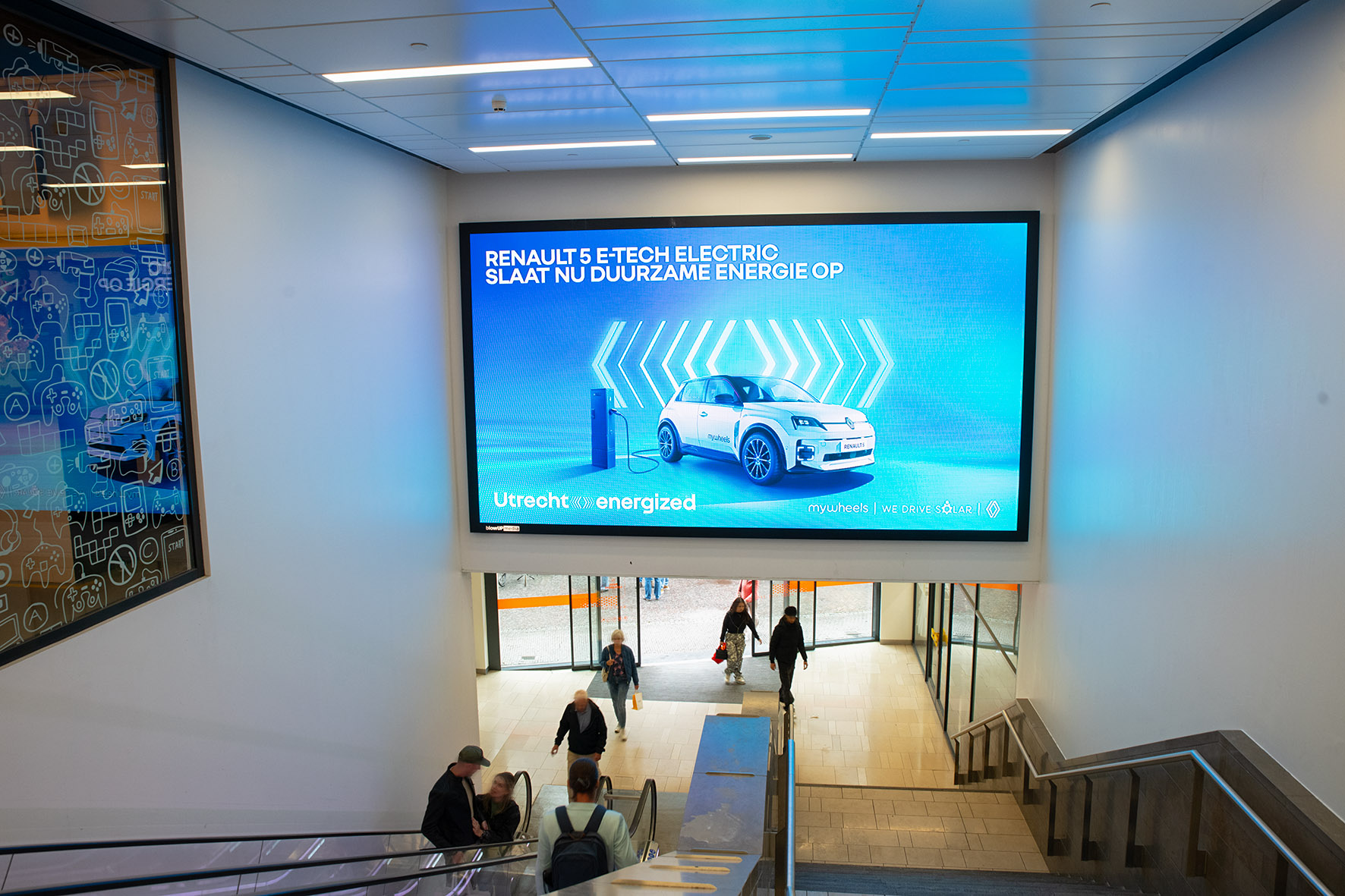 Each year, more than 4 million people pass through this busy entrance to Hoog Catharijne, walking directly towards this 15m² LED screen. This makes it an ideal location for reaching the Utrecht local audience. The passageway is mainly used by city residents who walk straight from the shopping centre to the well-known Steenweg, one of Utrecht’s busiest shopping streets. In addition to regular visitors, the route also attracts many students, day-trippers and tourists heading into the city centre. The screen is located in a narrow passage, meaning campaigns naturally command attention.