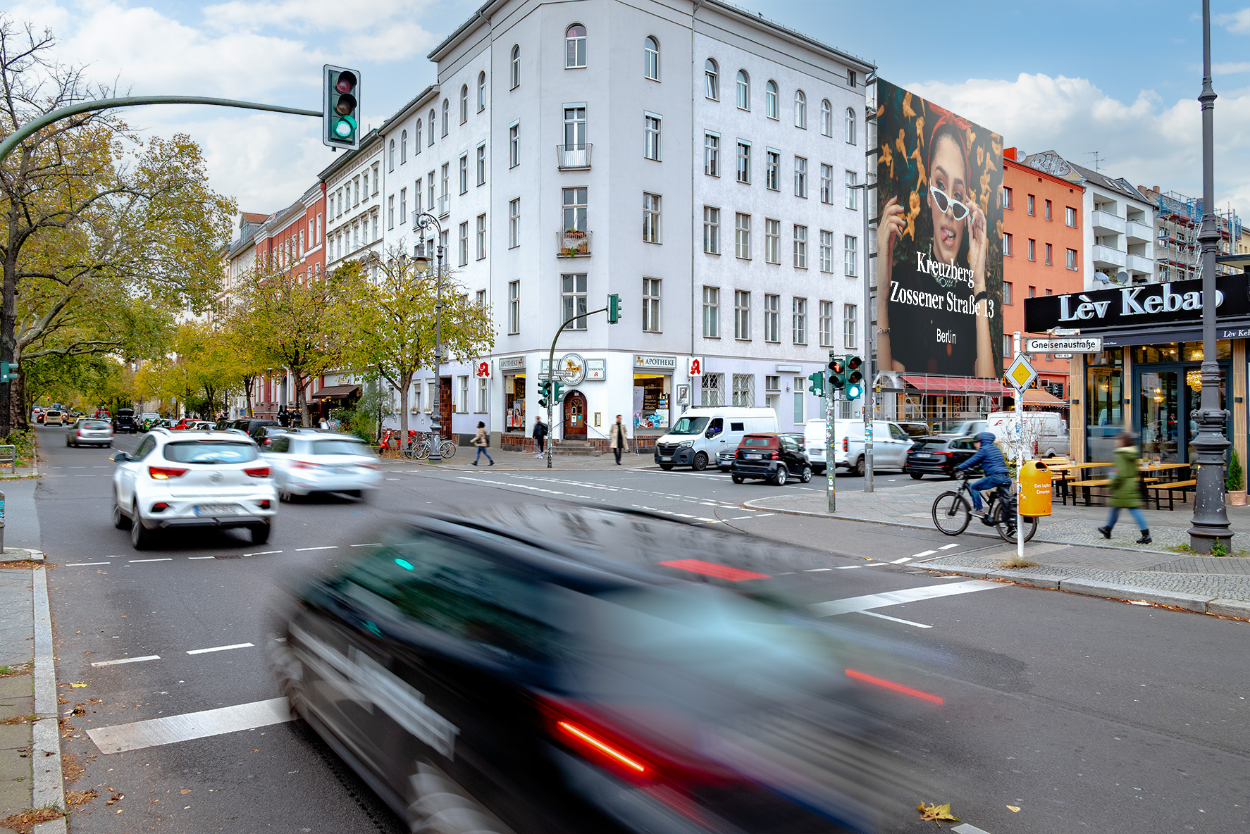 This highlight is located in the heart of Kreuzberg, one of Berlin’s most vibrant districts. Around the Gneisenaustraße underground station, you can experience the true spirit of Kreuzberg. Between historic Gründerzeit buildings, trendy cafés, restaurants, and bars, multicultural street life meets authentic Kiez charm. A diverse, urban audience of young creatives, students, expats, and long-time Berliners shapes the lively streetscape of this unique quarter.