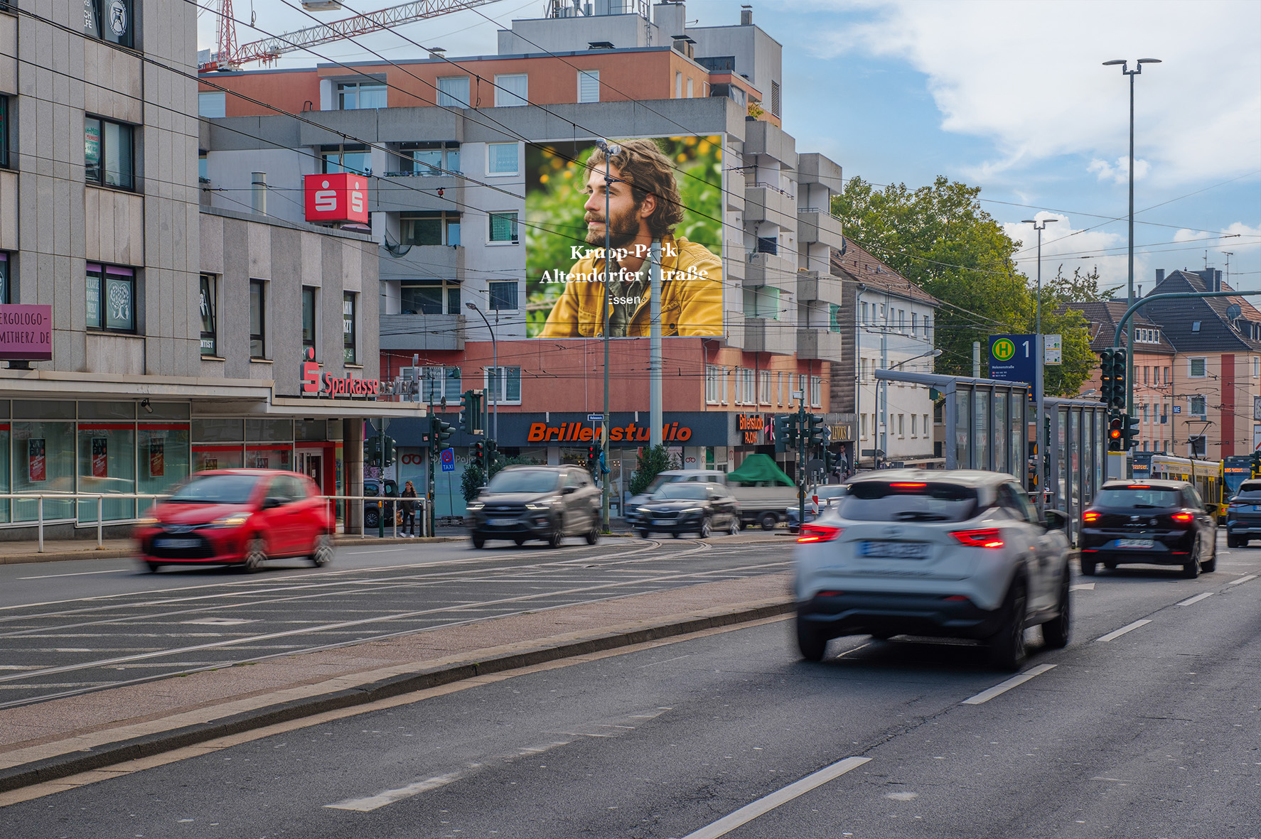 Traffic location in a unique position: Situated directly adjacent to Krupp Park in Essen, this location is impossible to miss. Located at the intersection of Helenenstraße and Altendorfer Straße, it attracts shoppers to numerous shopping opportunities, such as Limbecker Platz, leading towards the city center. Residents can easily access one of the many tram lines and Krupp Park, a popular recreational area for all ages.