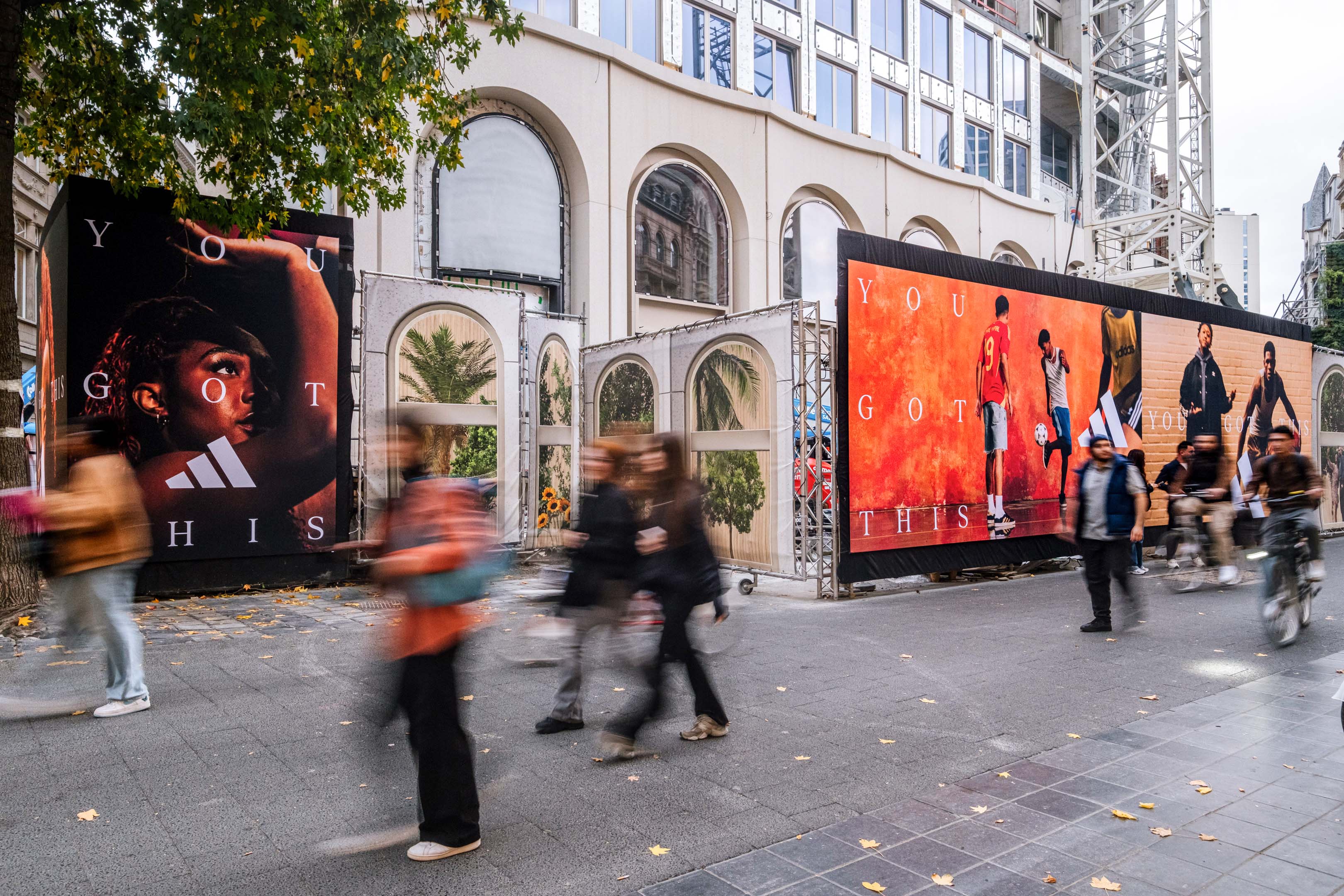 This exceptionally beautiful Giant Poster location, formerly known as the Belgacom Building, is situated at the intersection of the famous Antwerp shopping street The Meir, the Jezusstraat and the Leystraat. The area around this unique BlowUP can be described as the beating heart of Antwerp´s shopping city centre, crowded by numerous people every day. Shoppers like to stroll around this area, visiting the many international known retailers and brands. Also more luxerious brands like Rolex, Quartier, Armani….have found there way to this area. Commuters will pass the Giant Poster site on their way from the North to the South or from the East to the West of the city. The statue of Antoon Van Dyck at the foot of the Giant Poster functions as a meeting point for numerous people that are up for a drink or a lunch in the close vicinity. Give your campaign a HEAD-ON space in the commercial heart of Antwerp !