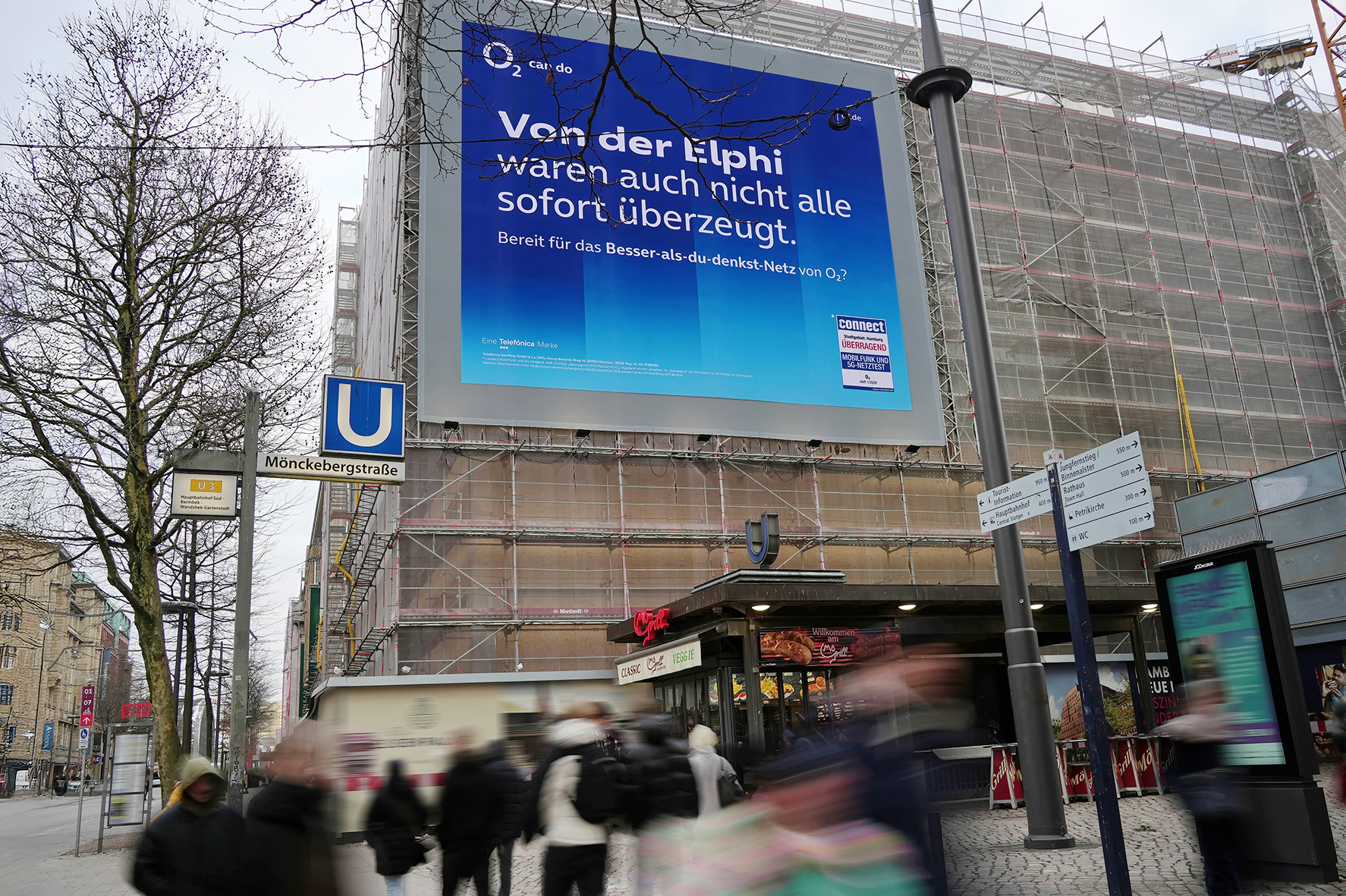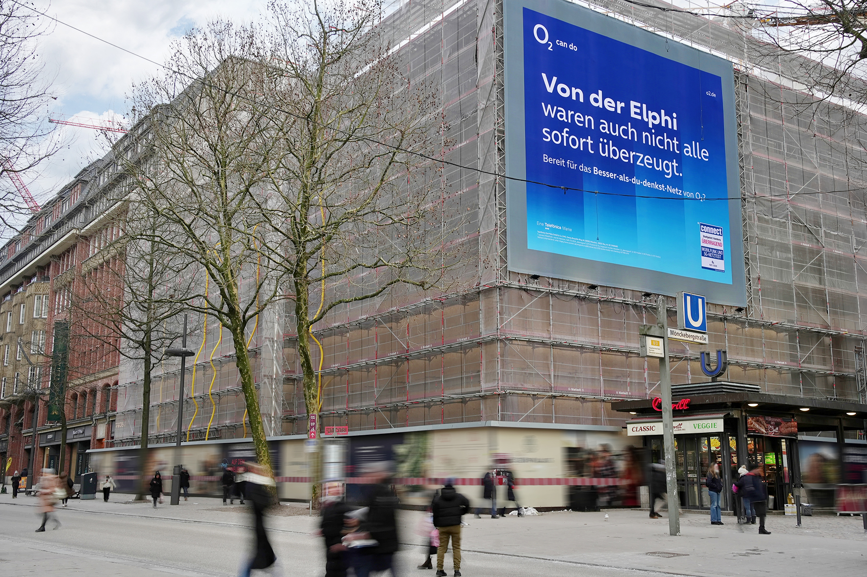 Giant Poster highlight in the centre of Hamburg's promenade and shopping mile Mönckebergstraße - the hotspot for fashion-conscious shopping fans and trendsetters. Running centrally between the main railway station and the town hall, Mönckebergstraße is one of the ten most-visited and highest-turnover shopping streets in Germany: almost 130,000 shoppers and culture-loving passers-by are drawn here every day to the variety of well-known fashion outlets, restaurants, cafés and theatres.