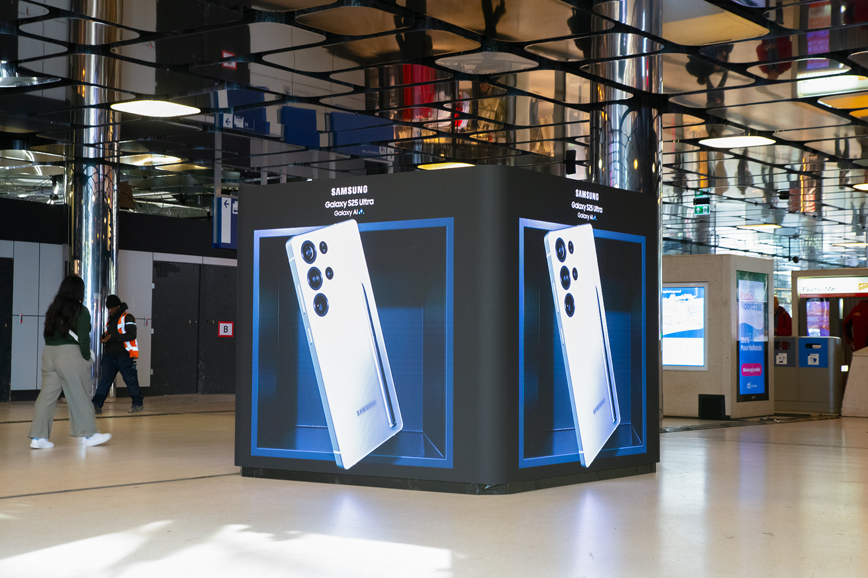 The Motion Cube sets a new standard in digital brand communication. With four seamless sides, this LED cube delivers spectacular 360° content for brand activations and campaigns at one of the busiest stations in the Netherlands, Amsterdam Central. The rounded corners of the Motion Cube are ideal for displaying immersive 3D content at eye level, creating a new level of engagement with passers-by.