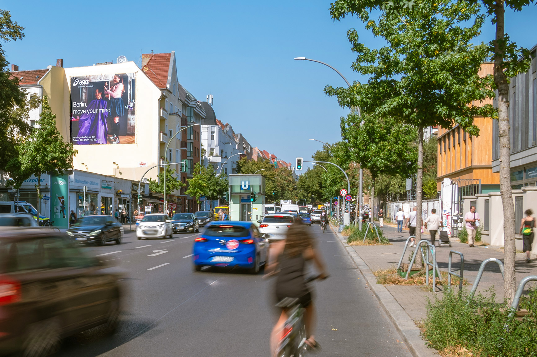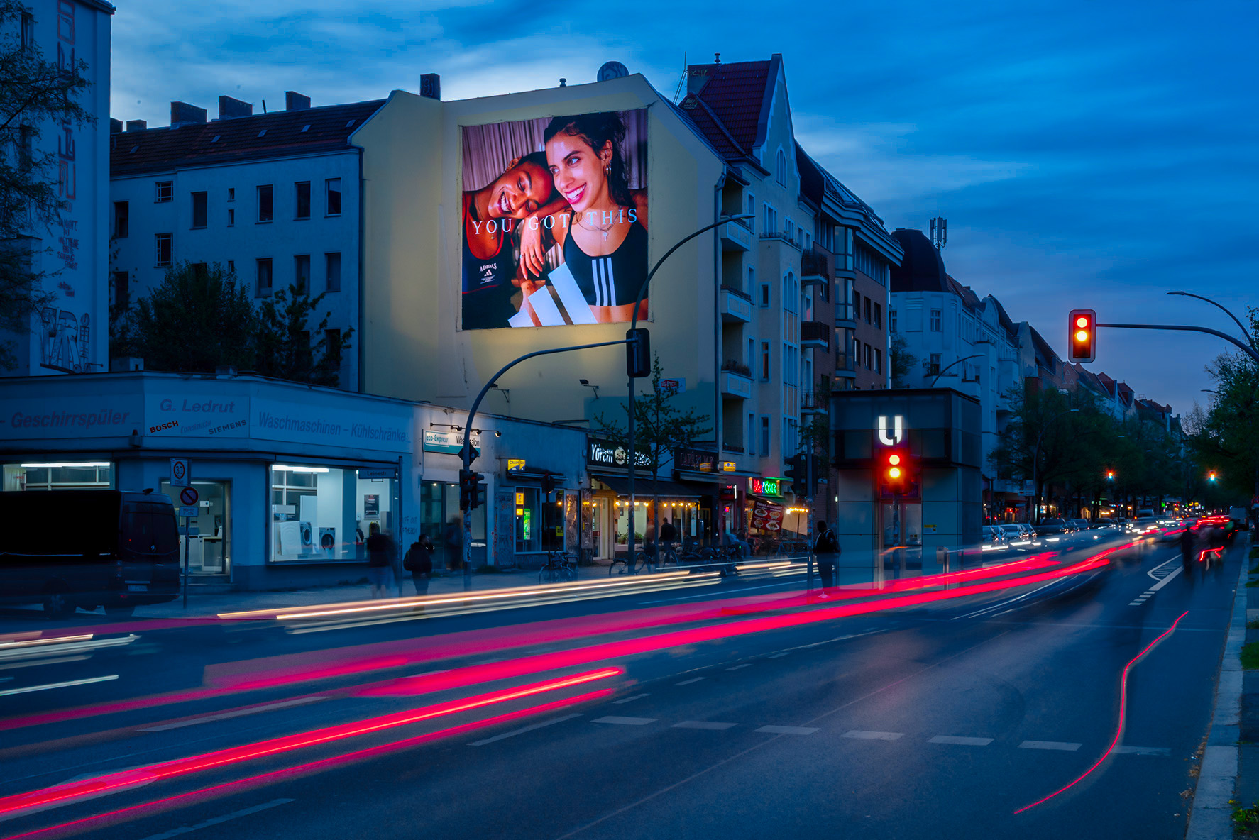 This Giant Poster offers brands the highest visibility and frequency on Hermannstraße in Berlin's Wilhelminian district of Schillerkiez, which is located in Berlin-Neukölln. Neukölln and Schillerkiez are very popular. The relaxed atmosphere, the close proximity to the popular Tempelhofer Feld park and the numerous cafés, bars and restaurants attract students, creative people and young families.