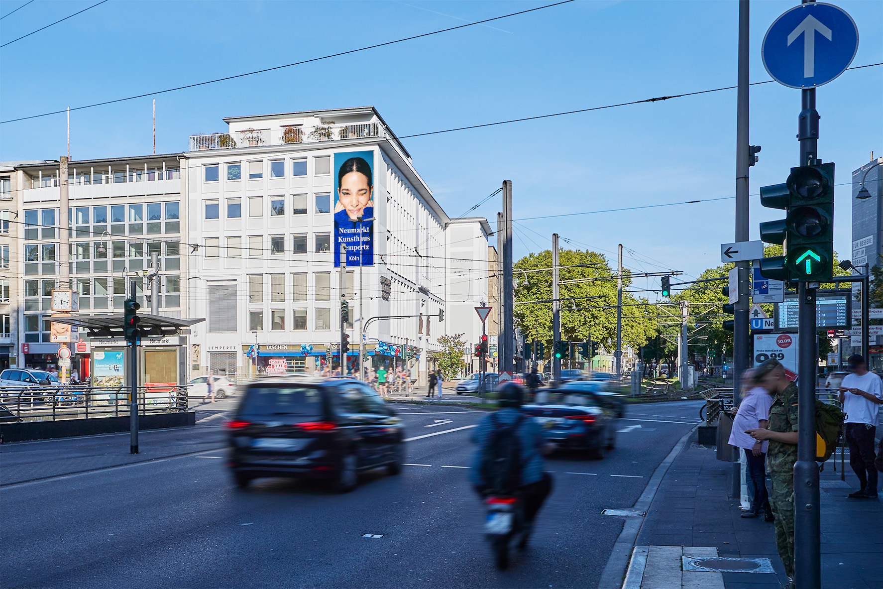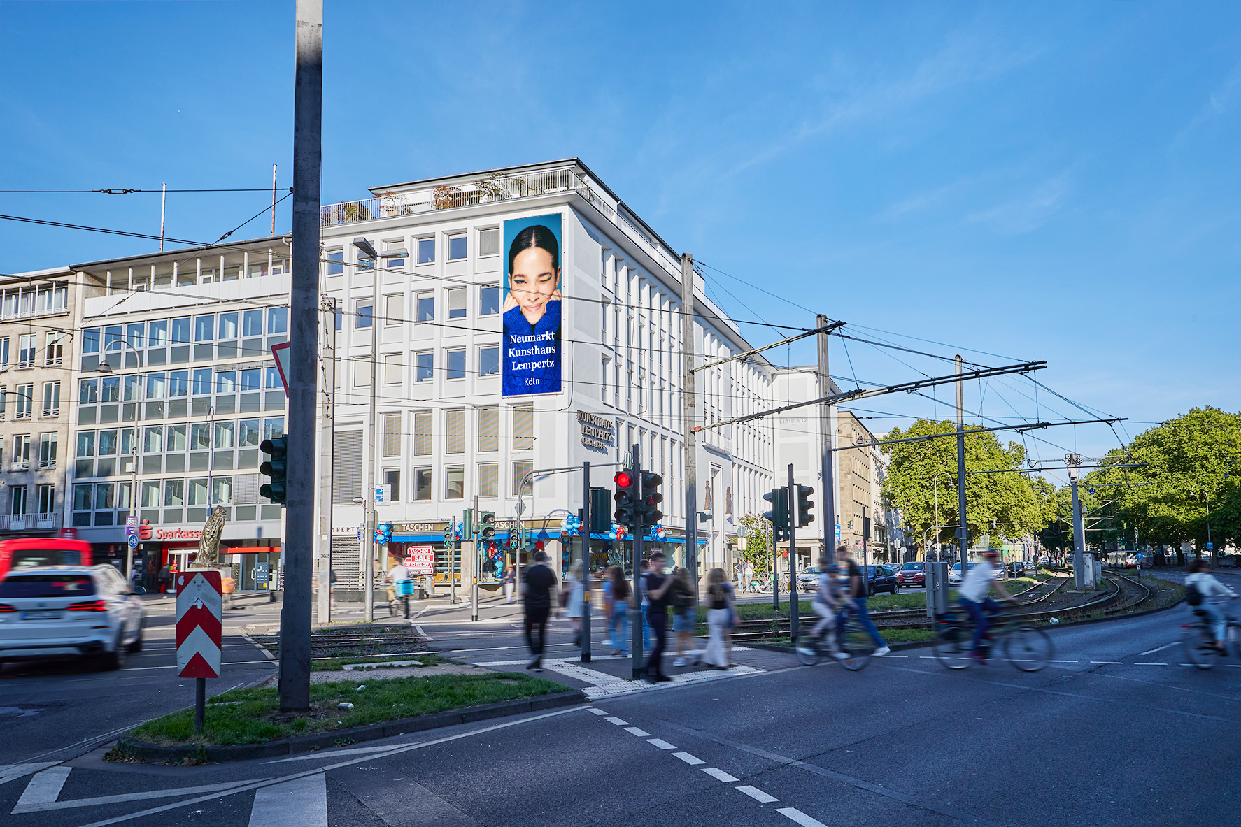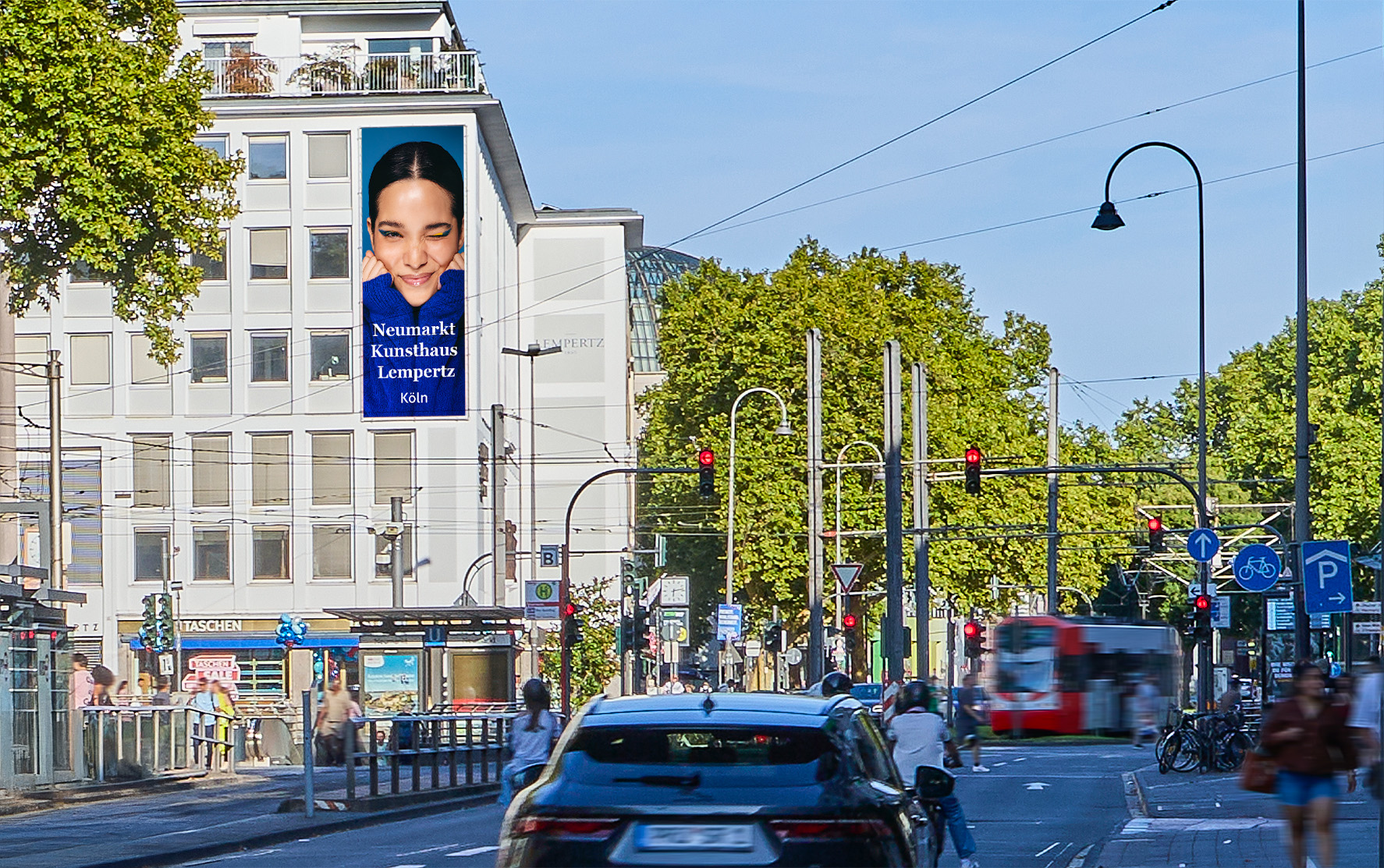 In a prime city location right at Neumarkt, one of Cologne’s most central and busiest squares, this Giant Poster guarantees maximum visibility. Here, the city’s main transport routes intersect, with subway, tram, and bus lines. As the busiest transportation hub in Cologne, countless commuters, travelers, and young locals pass by. The diverse audience is drawn toward the historic Old Town or to Ehrenstraße and Schildergasse, one of Germany’s most popular shopping streets.