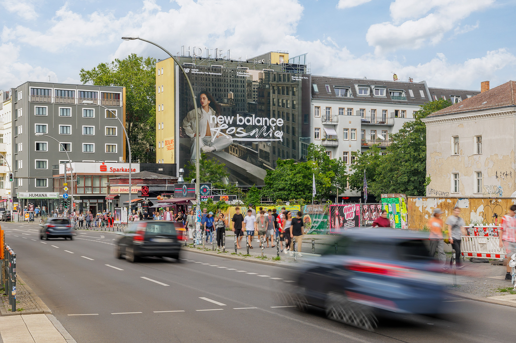 This impactful giant poster is located at the high-traffic intersection of Warschauer Straße and Revaler Straße – one of the main thoroughfares in the heart of Friedrichshain. The trendy district is known for its creativity, club culture, and urban lifestyle, attracting a young, urban target audience every day. The nearby Warschauer Straße station is a central hub for countless night owls, art and culture enthusiasts, and tourists heading into Berlin’s vibrant nightlife. In the immediate vicinity are hotspots such as the Uber Arena, the RAW-Gelände, the legendary Berghain club and the East Side Gallery.