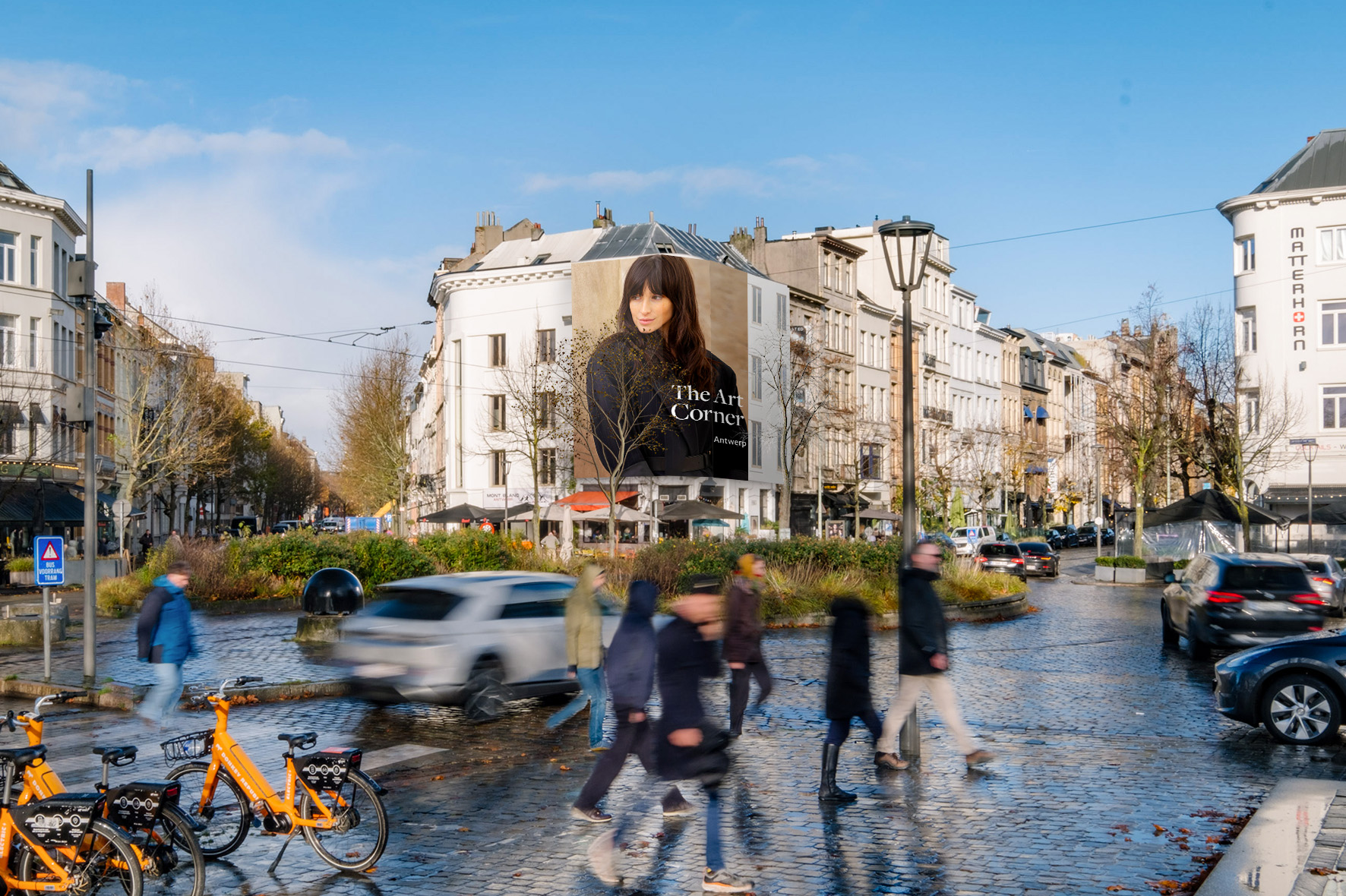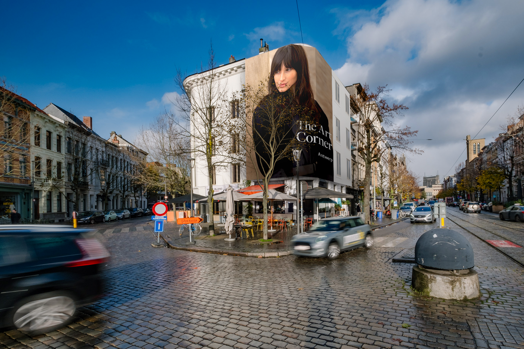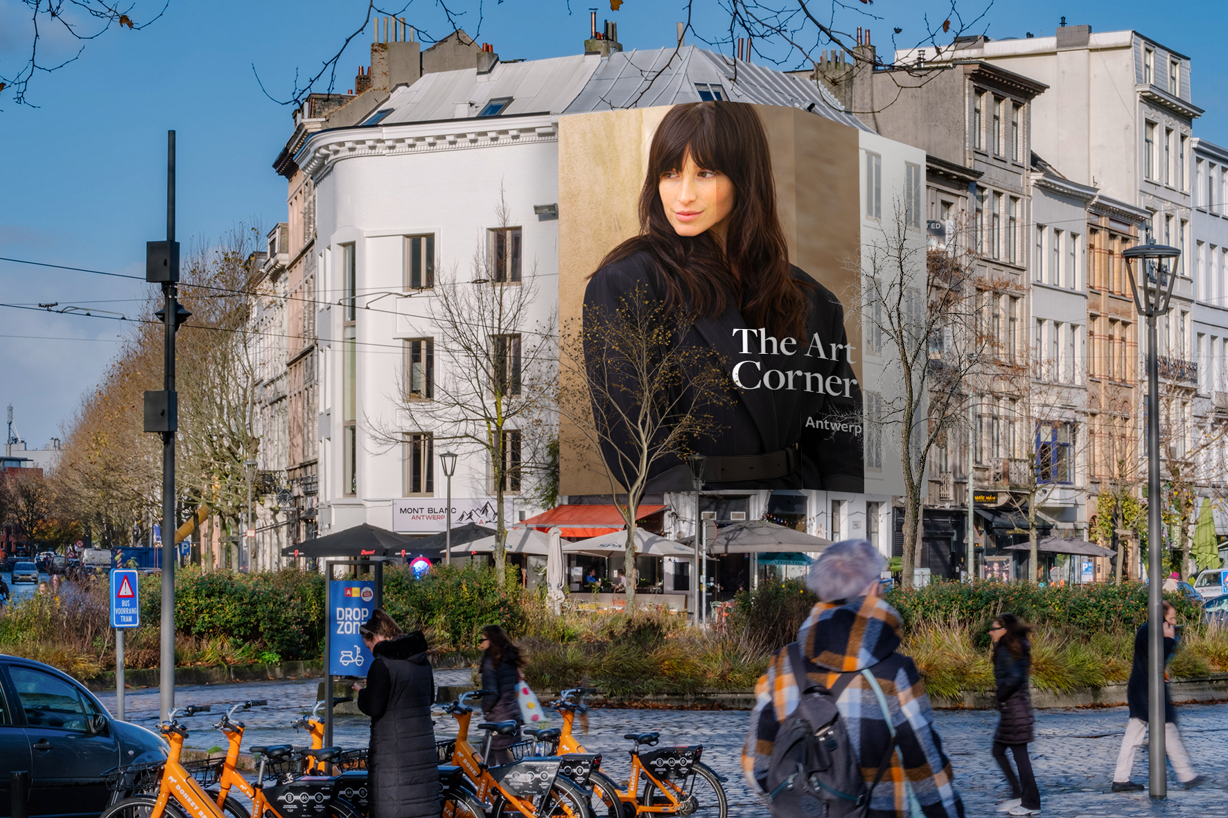 The corner location is situated in the trendy quarter 'Zuid', hosting numerous events throughout the year, attracting a diverse target audience. The area around this site is known for its exclusive housing spaces and thus for a multitude of hip, successful and trendy people. With a impact range for pedestrians, cyclists and general traffic, this impressive site ensures exellent visibility and extra long viewing times. beiing surrounded by numerous terraces of the finest bars,clubs and restaurants Antwerp has to offer, this location forms the centre of a vibrant leisure time area.