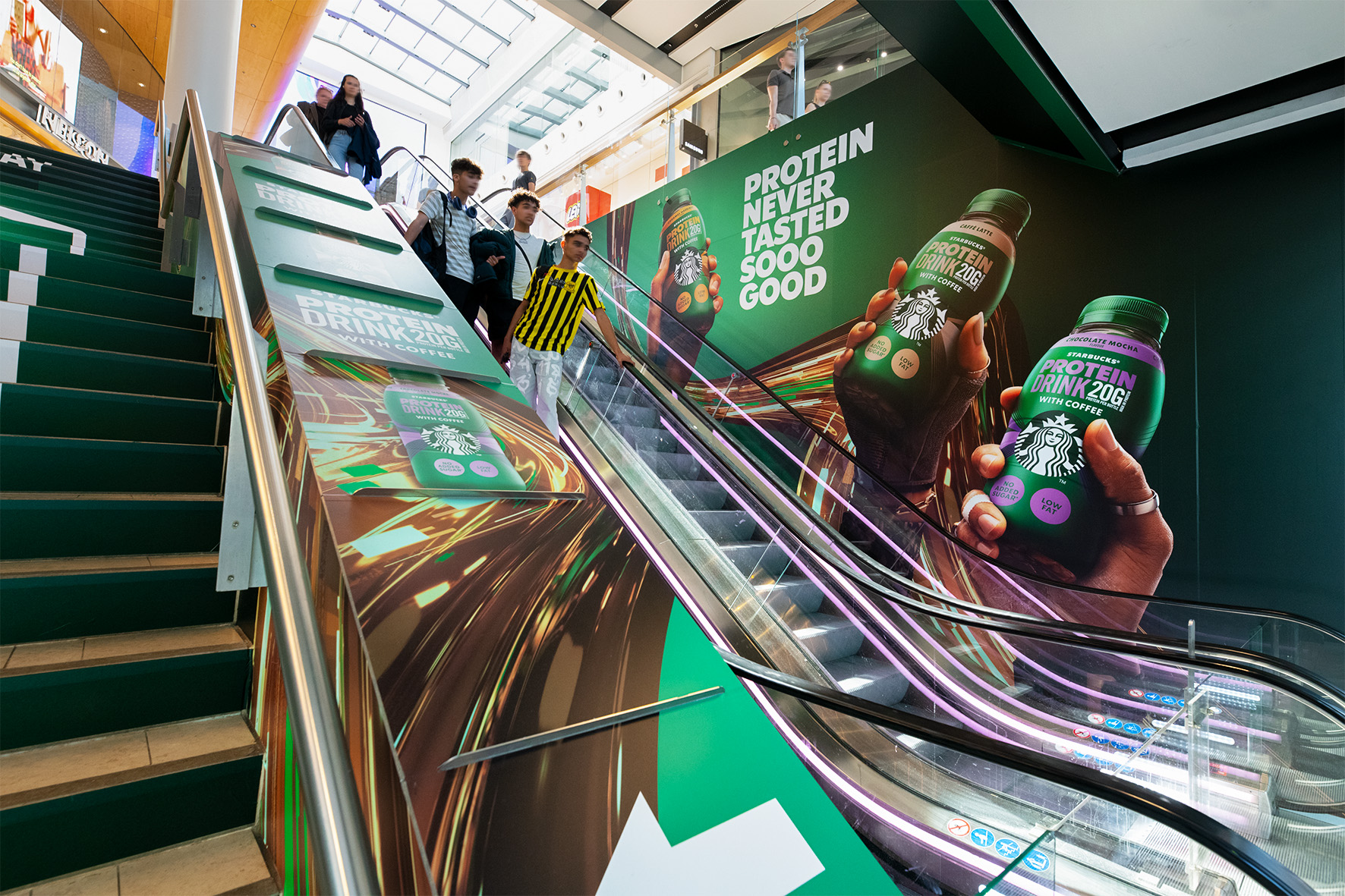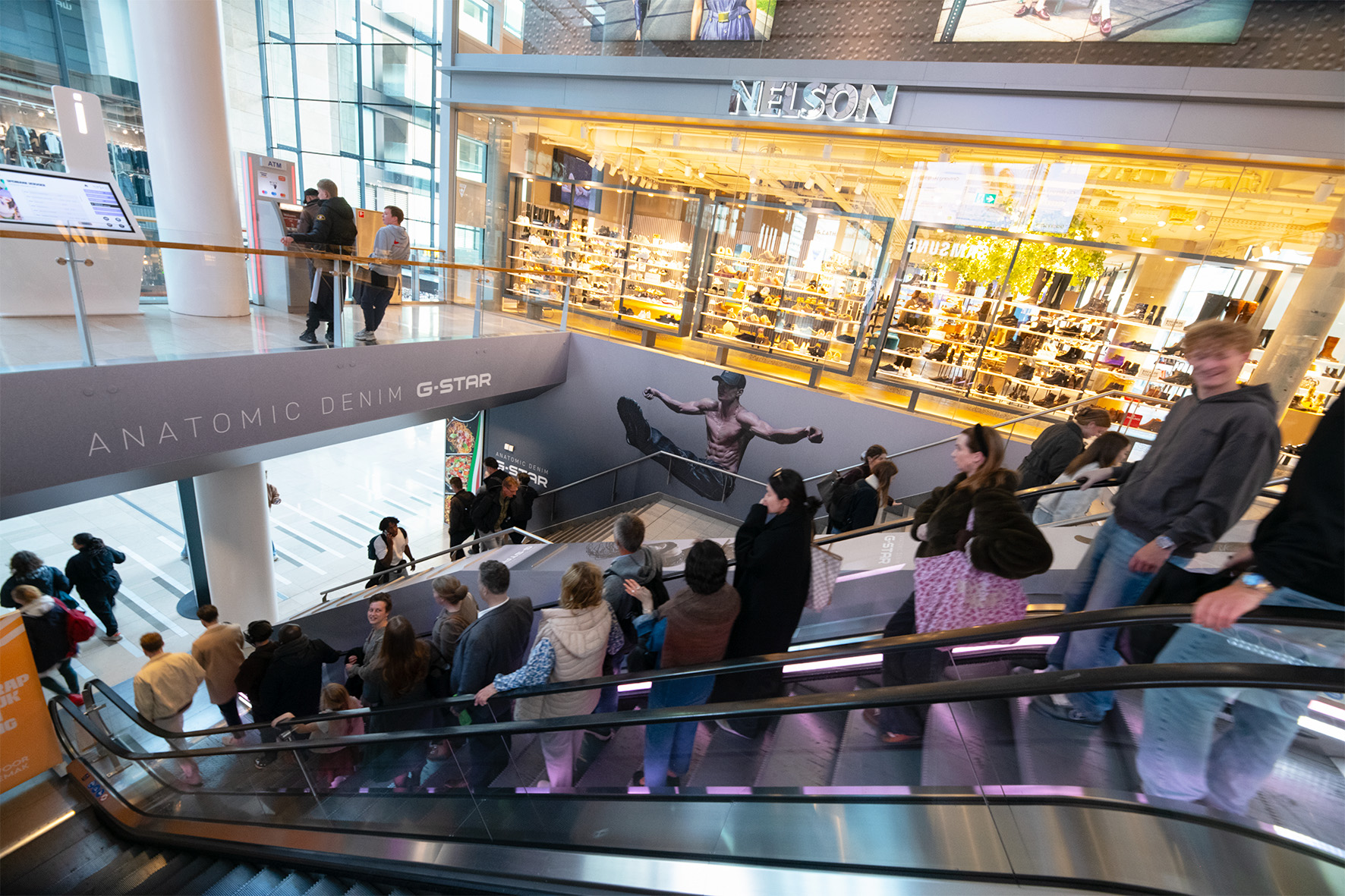 Make a brand statement in shopping mall Hoog Catharijne, the busiest retail hub in the Netherlands, with full wrapping of the Stairs. This location concerns the South side, but can be combined with the North side. The 'Stairs' are a huge eye-catcher that passers-by cannot ignore, especially in combination with stickers on the walls. Upon arrival on the first floor, a matching digital campaign on the screen reinforces The South Mile; the perfect complement to this brand experience.