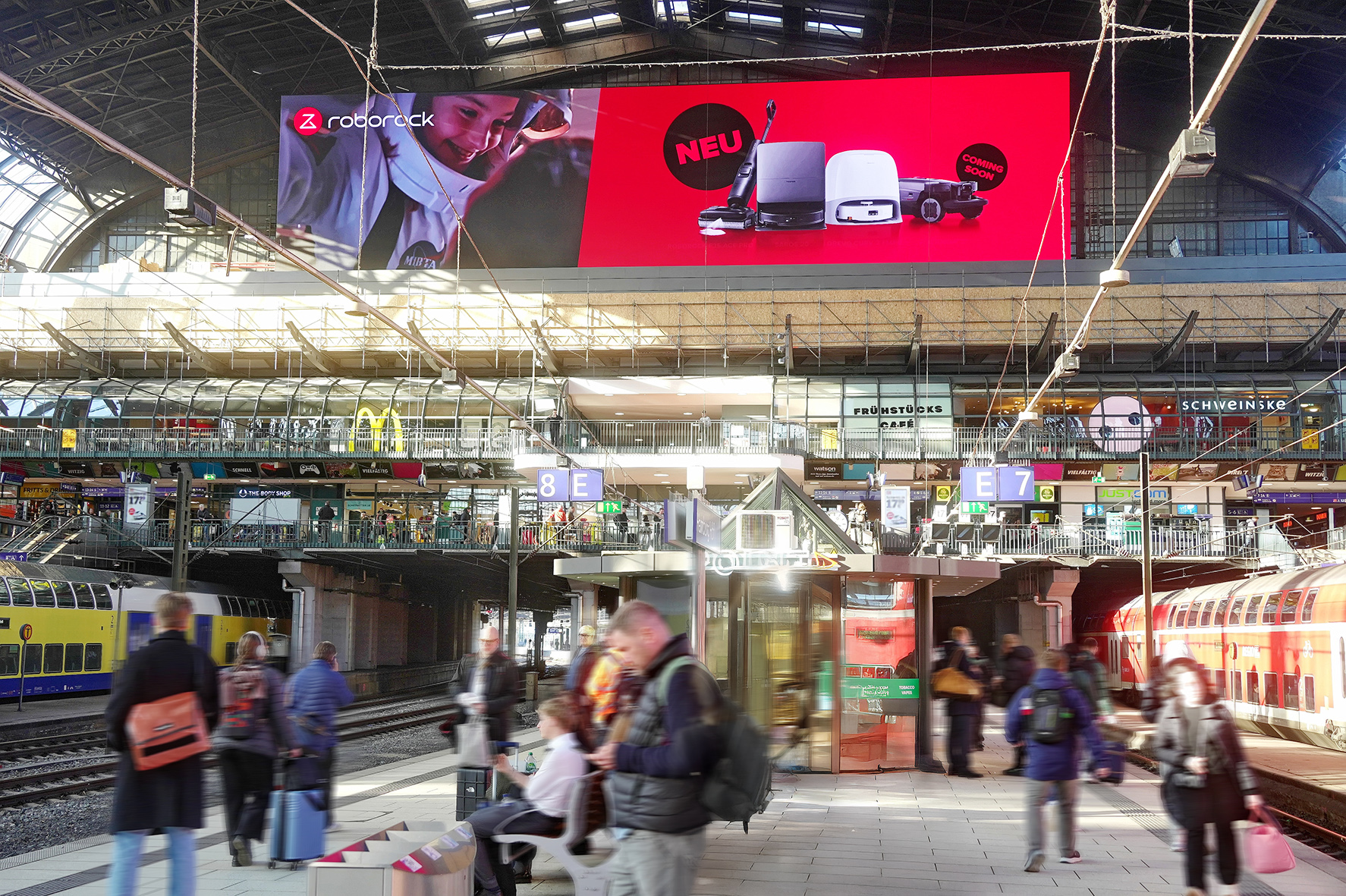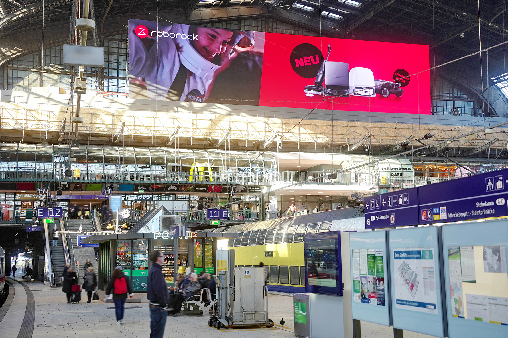 342m² of pure emotion at Germany's most-reached DOOH touchpoint! With over 550,000 visitors daily, Hamburg Central Station is the country's busiest touchpoint. In the heart of the train shed, the eye-catching "The Whale" offers ample space for iconic presentations and unique experiences: Full motion and 3D generate maximum attention for creative brand displays that leave a lasting impression.